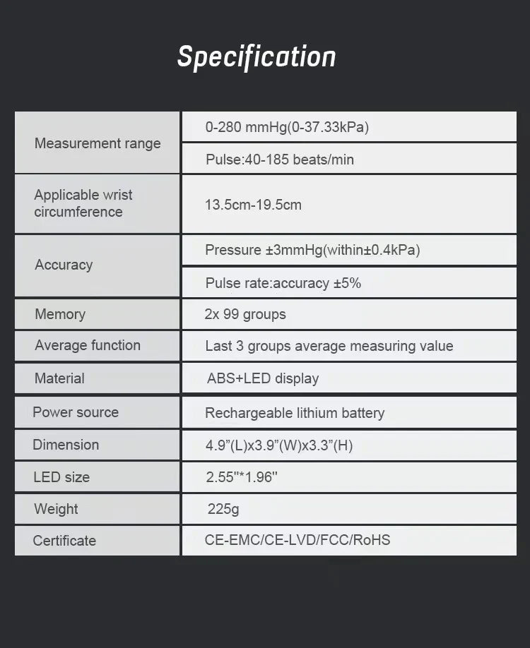 - 1x Cardiovyn™ Wrist Blood Pressure Monitor
