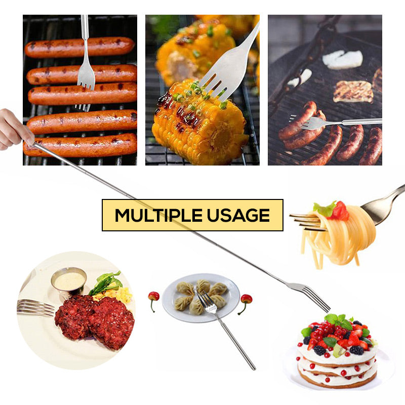 This fork can be used in a variety of scenarios, not only for pasta and steak, but also for dumplings and cakes. Finally, if you like grilling, you can turn this fork to the longest and use it directly for grilling.