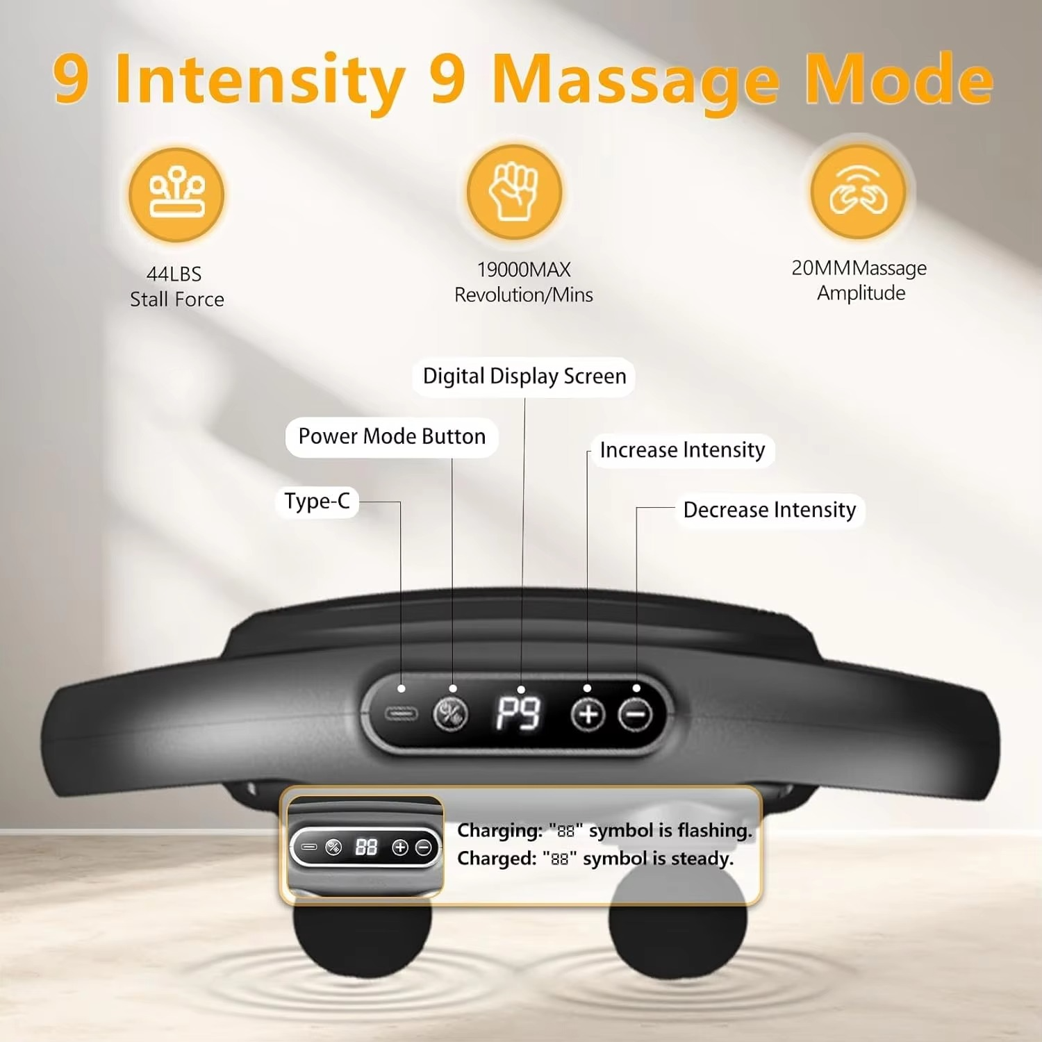 ✔ Powerful Percussion Therapy: Breaks deep tissue tension with up to 9 adjustable intensity levels.