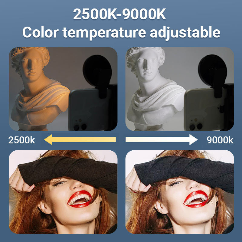 ADJUSTABLE BRIGHTNESS AND COLOR TEMPERATURE - The Magnetic Ring Phone Fill Light offers versatile lighting options with adjustable brightness and color temperature settings. This feature allows users to customize the light to their specific needs, whether for makeup application, live streaming, or taking the perfect selfie.